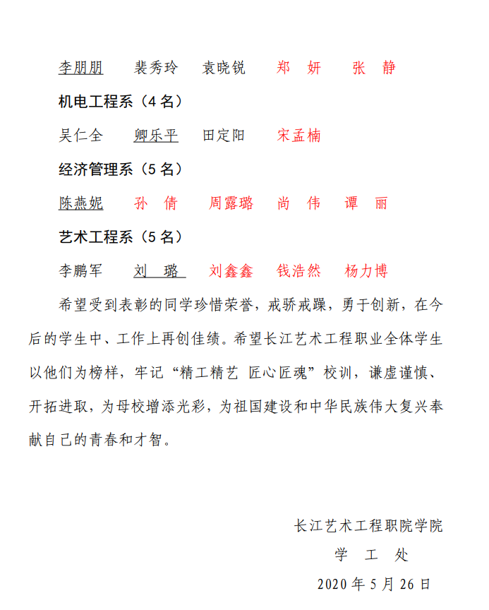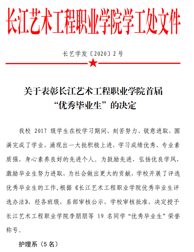 关于表彰长江艺术工程职业学院首届“优秀毕业生”的决定